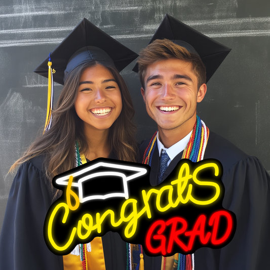 Mllum Congrats Grad Neon Sign with Cap Dimmable LED Light Up Sign Neon Light Background Wall Art Decoration Class of 2025 Celebrations Graduation Party Gifts USB Powered (Clear&UV Backboard)